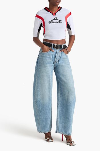 Layered jersey-trimmed high-rise wide-leg jeans