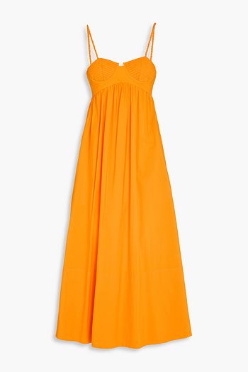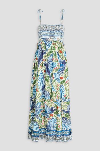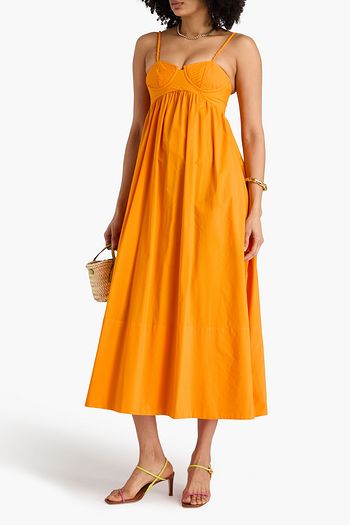 Crochet-trimmed printed Swiss-dot cotton midi dress