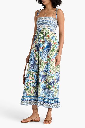 One-shoulder ruffled printed TENCEL™ and cotton-blend midi dress