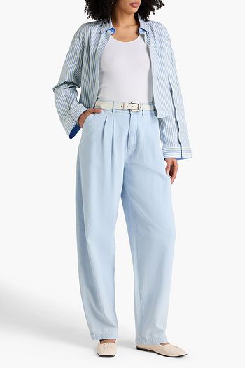 The Gathered striped cotton-blend poplin top