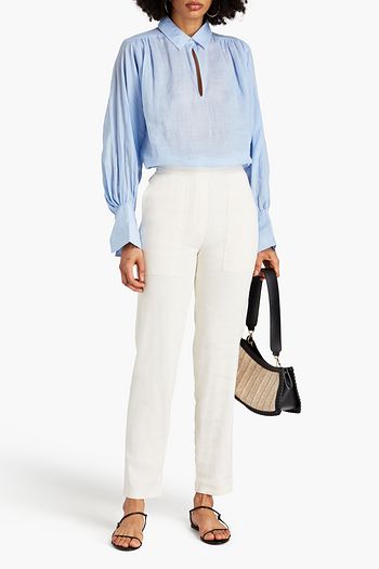 Linen-blend twill straight-leg pants