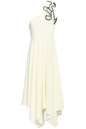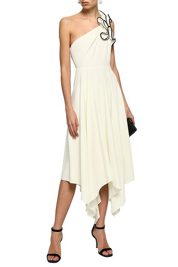 Off-the-shoulder ruffled stretch-crepe midi dress