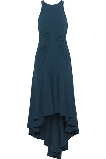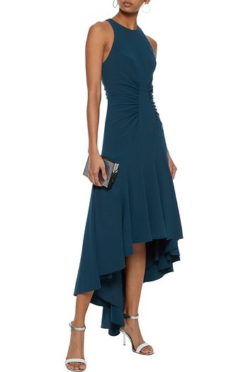 Asymmetric ruched crepe dress