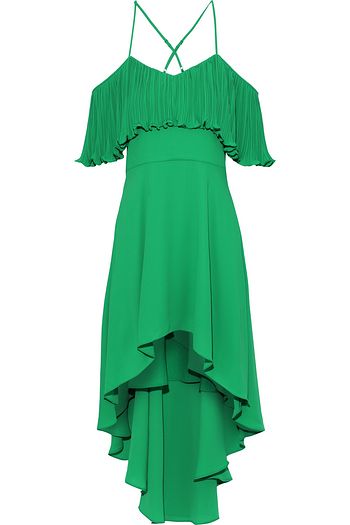 Cold-shoulder plissé-paneled crepe de chine dress