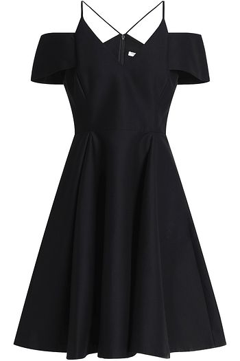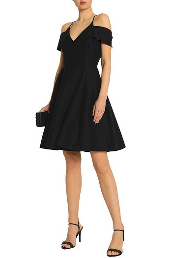 Flared cold-shoulder cotton and silk-blend dress