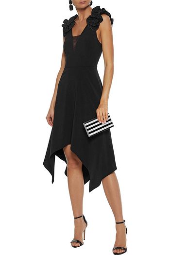Asymmetric stretch-crepe midi dress