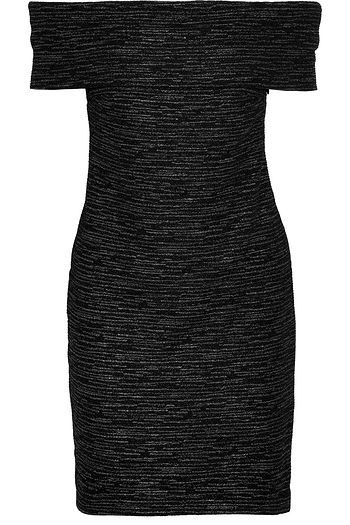 Off-the-shoulder metallic bouclé-knit mini dress