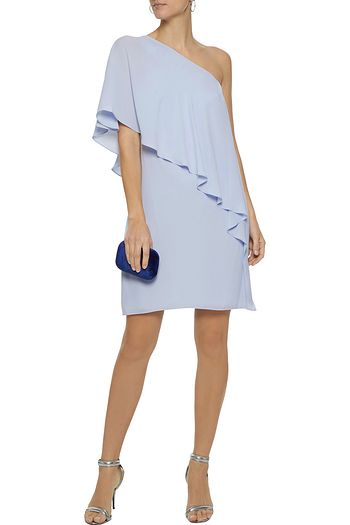 One-shoulder layered crepe mini dress