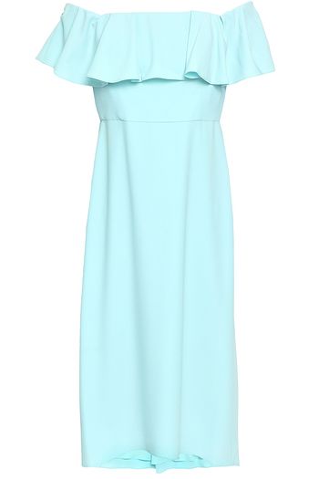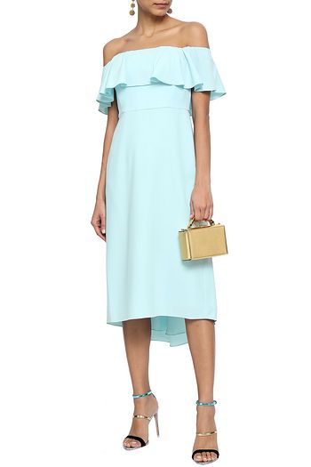 Off-the-shoulder ruffled stretch-crepe midi dress