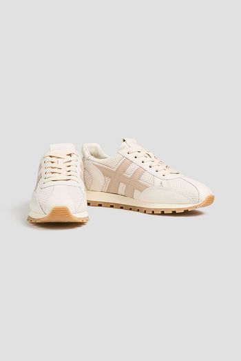 Mesh, leather and suede platform sneakers