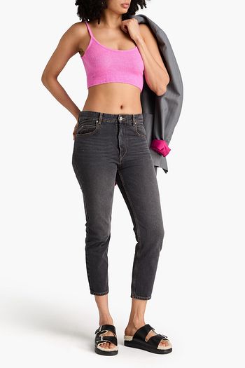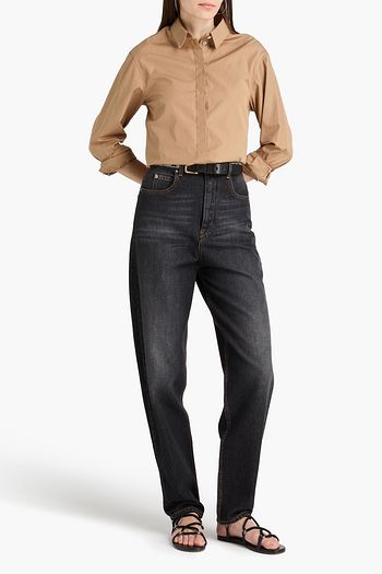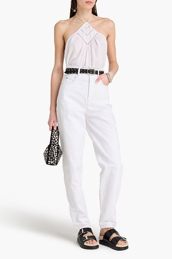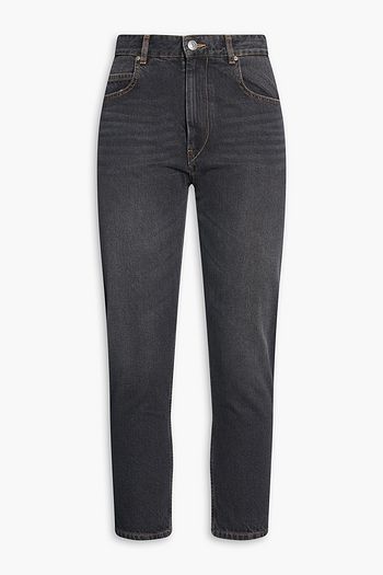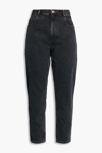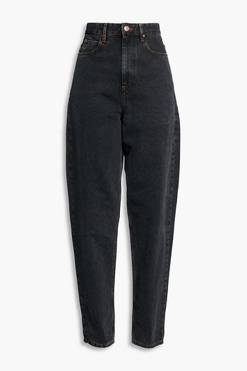 Hominy pintucked acid-wash high-rise slim-leg jeans