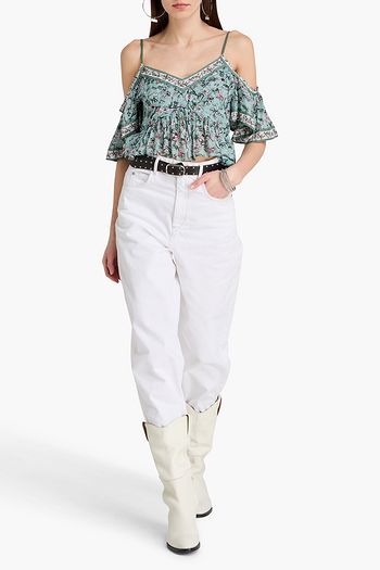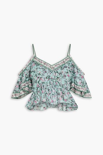 Garuva cropped cold-shoulder floral-print cotton-voile top