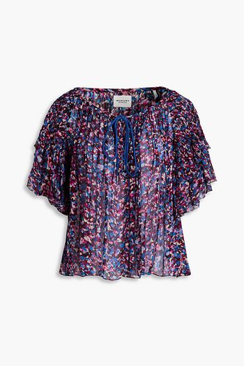 Leaza pintucked floral-print cotton-voile blouse