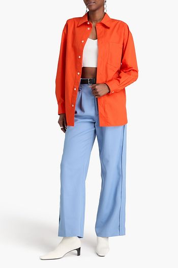 Zip-detailed cotton-blend gabardine straight-leg pants