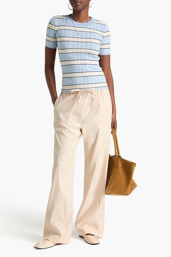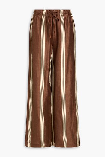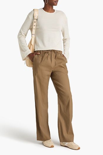 Cropped striped cotton, hemp and linen-blend straight-leg pants