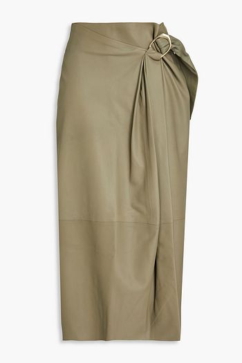 Pleated embellished leather midi skirt