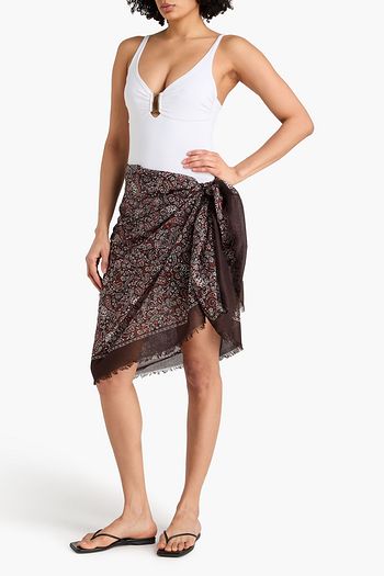 Frayed printed cotton-gauze pareo