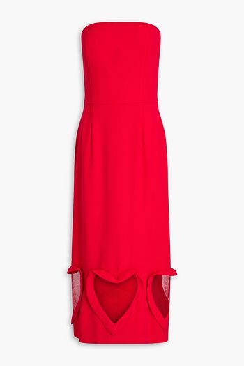 Crocheted lace-trimmed ruffled plissé-organza midi dress
