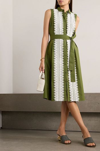 Poplin and chiffon-trimmed wool and silk-blend crepe mini dress