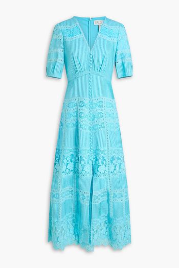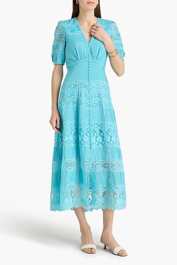 Phoebe lace-paneled floral-print cotton and silk-blend midi dress