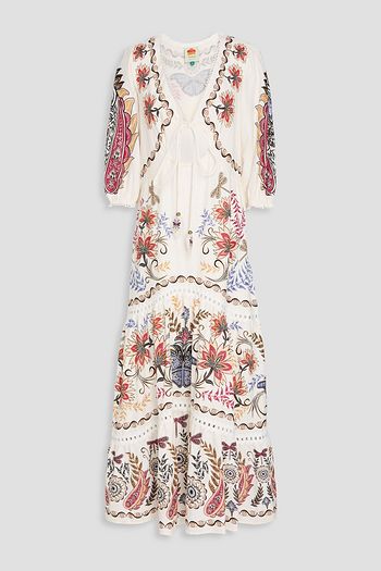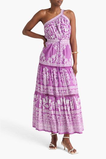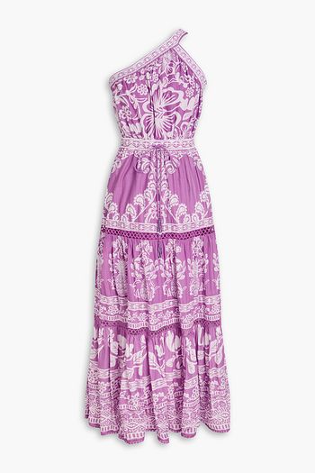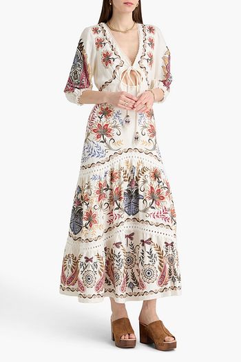 Phoebe lace-paneled floral-print cotton and silk-blend midi dress