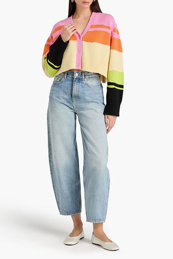 Cropped striped cotton-blend cardigan