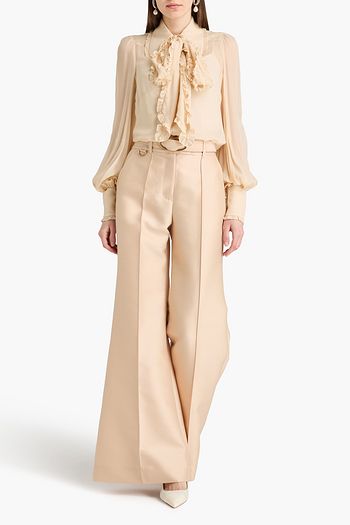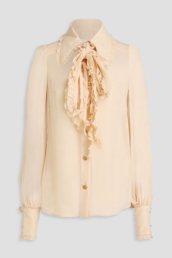 Pussy-bow silk crepe de chine blouse