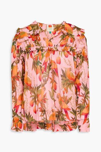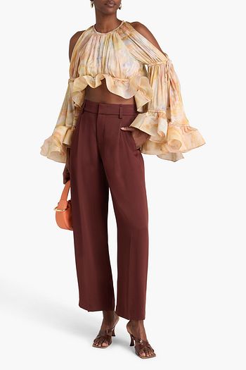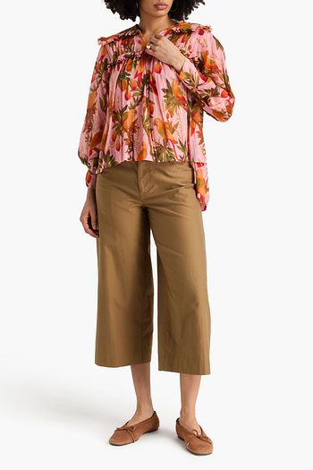 Cropped ruffled cotton-jacquard blouse
