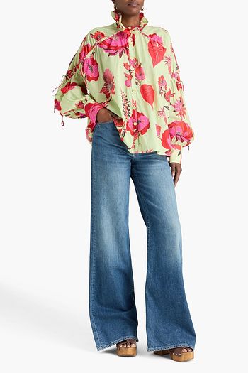 Floral-print silk-satin blouse