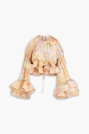 Dezi cropped printed silk-blend jacquard blouse