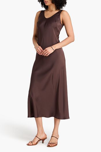 One-shoulder cutout silk-satin midi dress