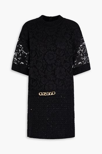 Sequin-embellished stretch-lace mini dress