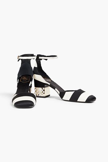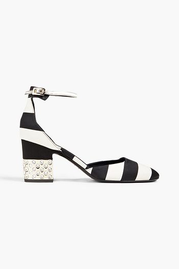 Embellished striped satin pumps