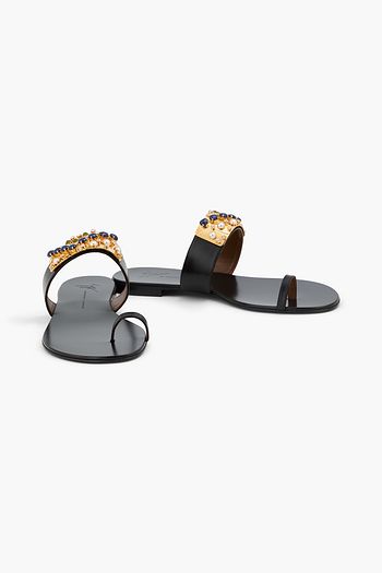 Rock 10 crystal-embellished patent-leather slingback sandals