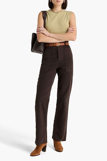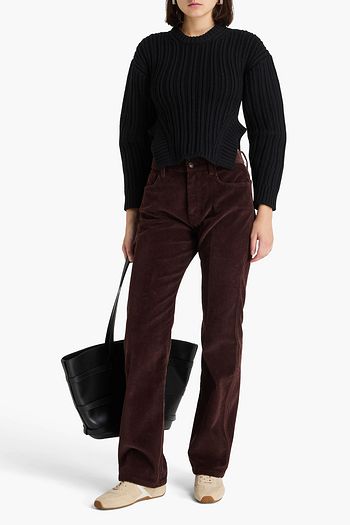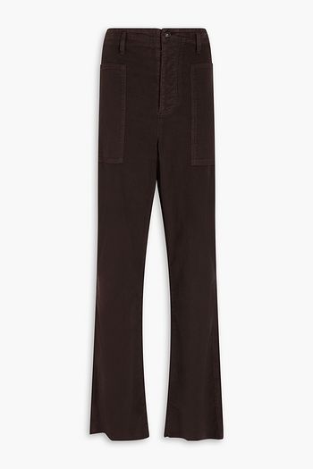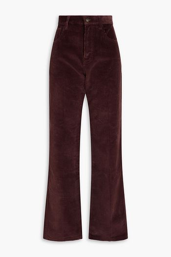 Bead-embellished cotton-blend corduroy wide-leg pants