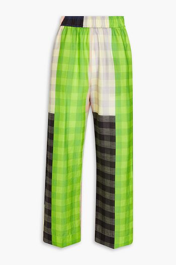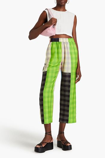 Cropped checked twill straight-leg pants