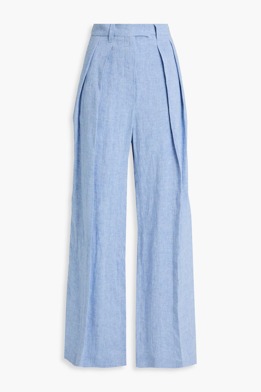 BRUNELLO CUCINELLI Pleated metallic linen-blend wide-leg pants