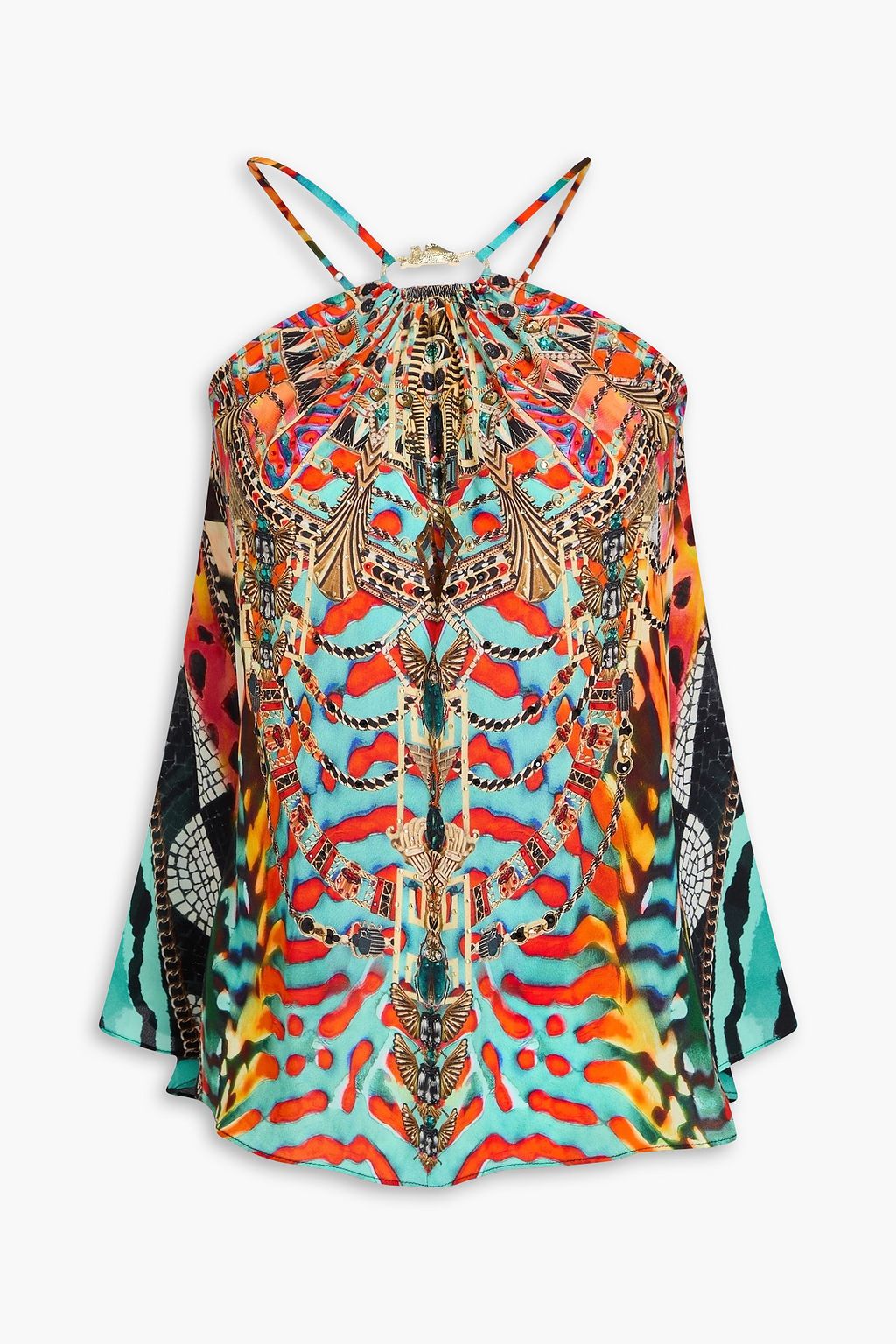 CAMILLA Embellished printed silk crepe de chine top