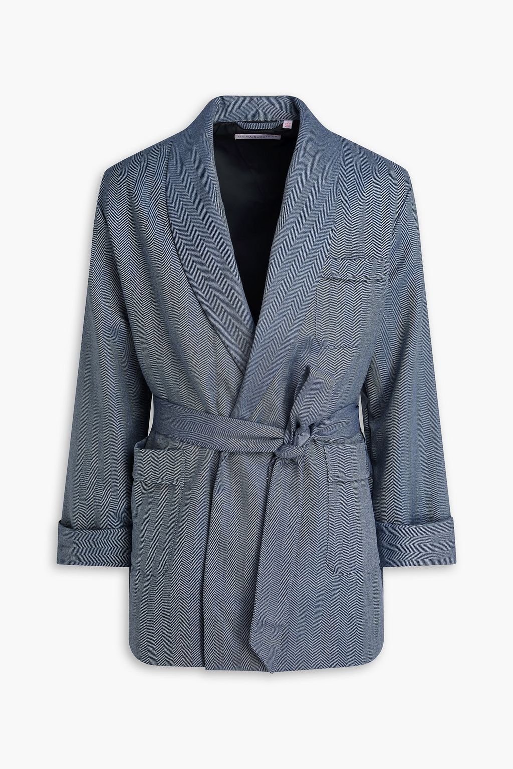 - Designed for a relaxed fit, use the tie belt to secure at the waist