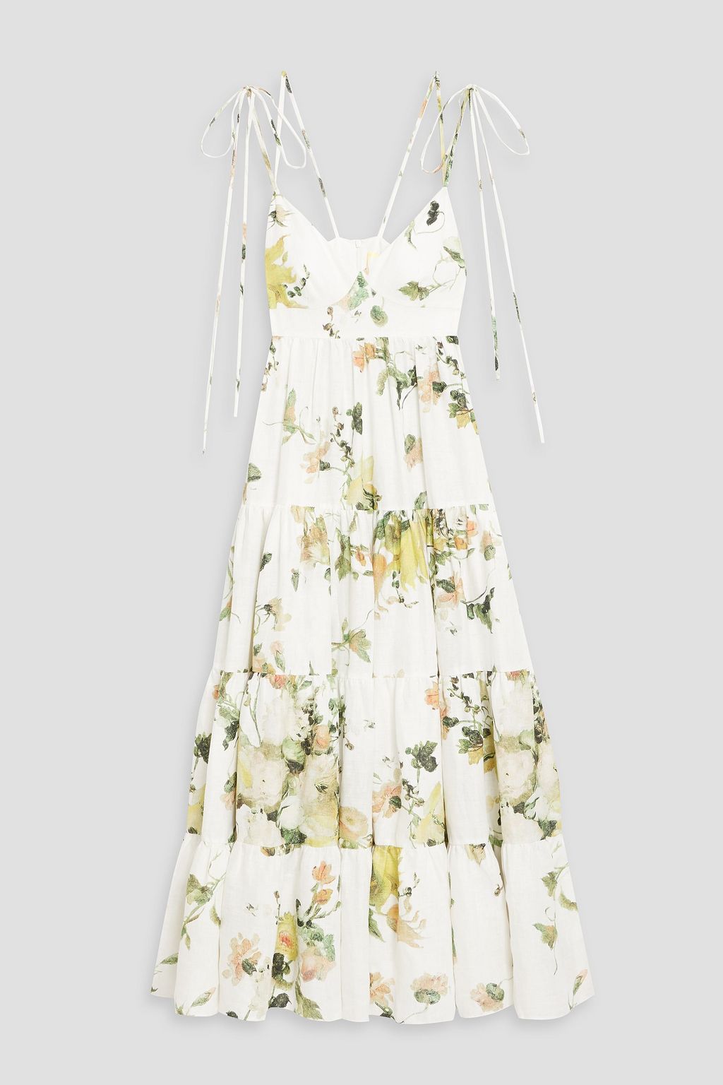 ERDEM Azami tiered floral-print linen midi dress