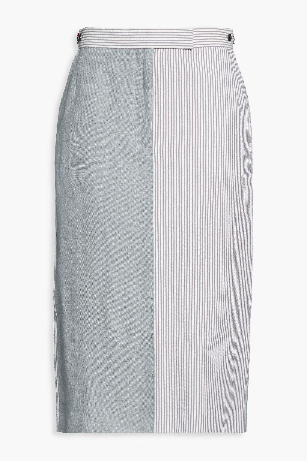THOM BROWNE Striped cotton-seersucker and linen midi skirt