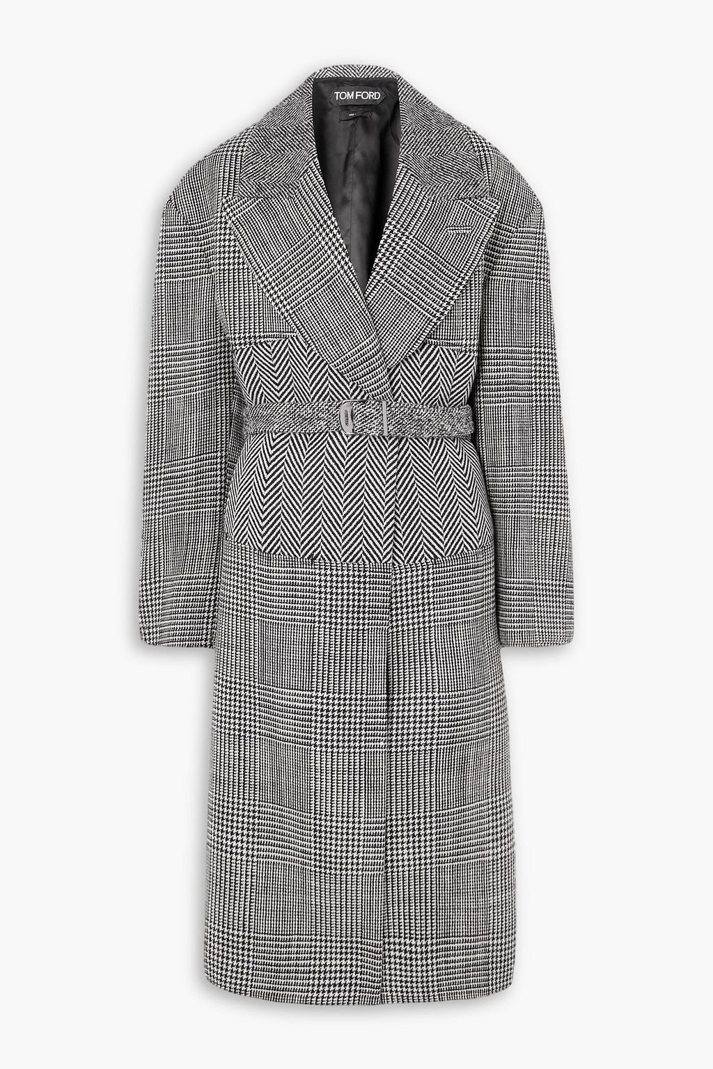TOM FORD's coat is beautifully tailored from cashmere woven with a patchwork of classic Prince of Wales checks and herringbone stripes that emphasize its timelessness. It's cut for a relaxed fit and has wide peak lapels. Cinch yours in at the waist with the logo-engraved belt.