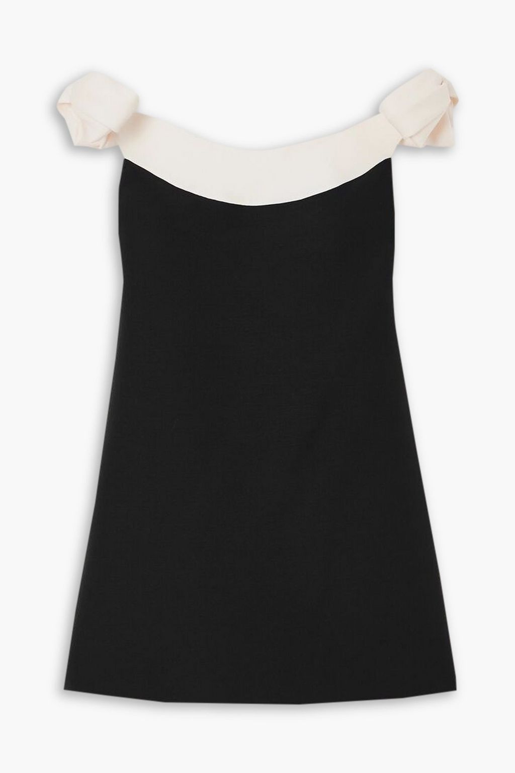 Bow-embellished off-the-shoulder wool and silk-blend mini dress
