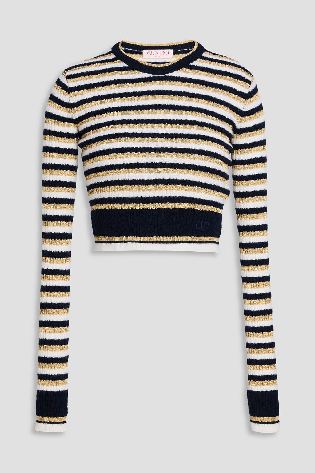 VALENTINO GARAVANI Cropped striped ribbed wool sweater