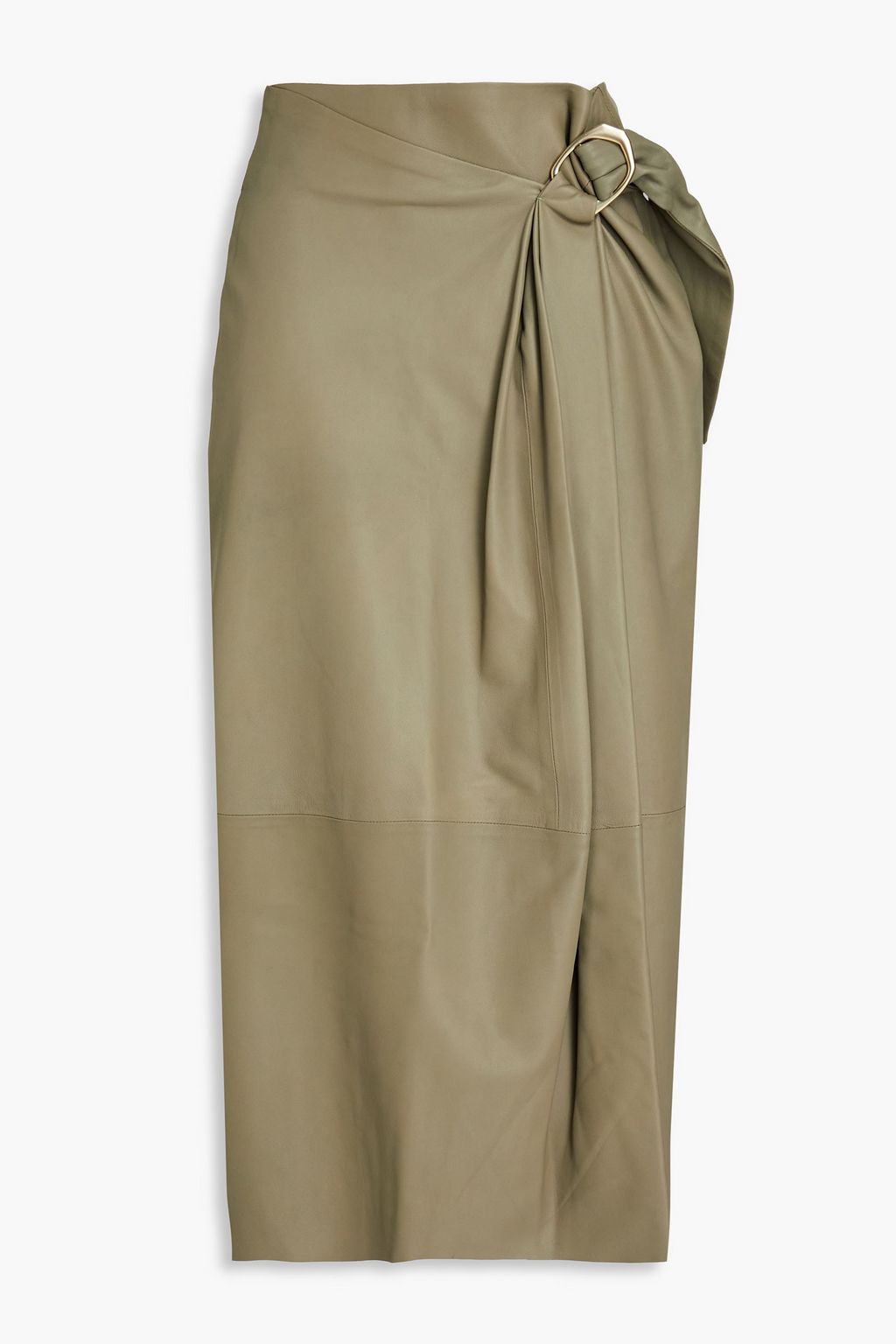 VINCE. Pleated embellished leather midi skirt