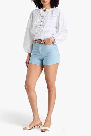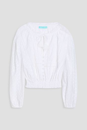 Cropped ruffled cotton-jacquard blouse
