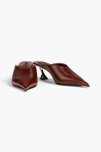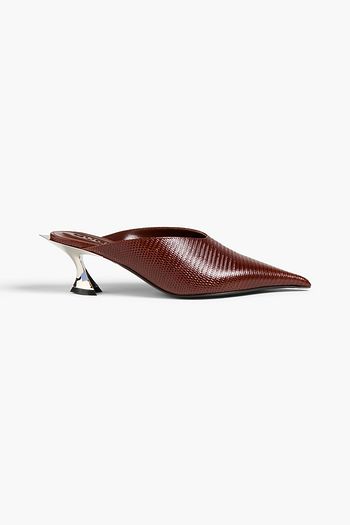 Lizard-effect leather mules