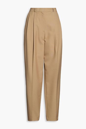 Pleated wool-blend twill tapered pants