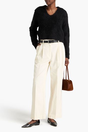 Pleated cotton-twill straight-leg pants