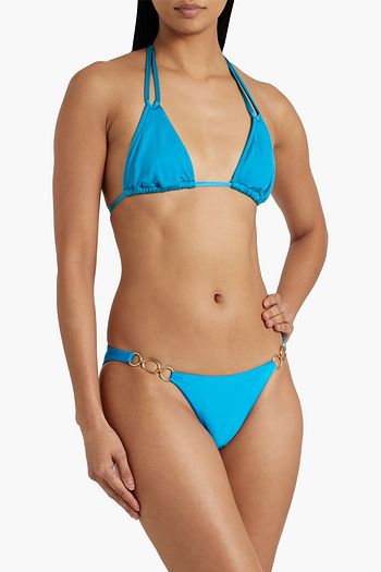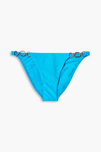 Amalfi ring-embellished striped low-rise bikini briefs
